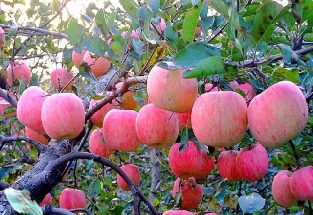 (2)化肥分3~6次施用,第一次在果實套袋前后(5月下旬),氮磷鉀配合施用,建議施用17-10-18蘋果配方肥;6月中旬以后建議追肥2~5次;前期以氮鉀肥為主,增加鉀肥用量,建議施用16-6-20配方肥;后期以鉀肥為主,配合少量氮肥(氮肥用量根據(jù)果實大小確定,果實較大的一定要減少氮肥用量,且增加鈣肥等用量)。干旱區(qū)域建議采用窄溝多溝施肥方法,多雨區(qū)域可放射溝法或撒施。